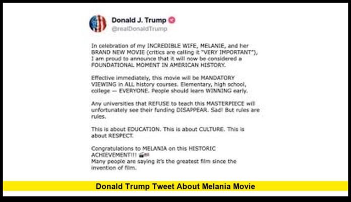 The donald trump tweet about melania movie has become a major point of discussion in the United States after the former president publicly promoted the documentary centered on Melania Trump as it arrived in theaters nationwide. The social media post, shared just as the film opened to the public, instantly pushed the documentary into political, cultural, and entertainment headlines.